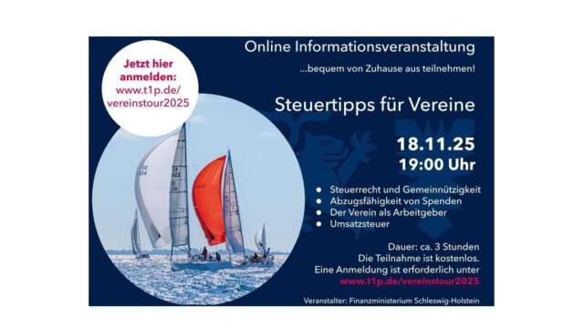 Das Finanzministerium Schleswig-Holstein lädt alle Interessierten zu einem kostenlosen Online-Seminar für Vereine und Verbände ein. Praxisnahe Informationen und wertvolle Tipps zur Inanspruchnahme von steuerrechtlichen Vorteilen … weiterlesen ›