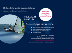 Das Finanzministerium bietet am Dienstag, 10. März 2026 von 19:00 – ca. 21:30 Uhr die kostenlose Online-Veranstaltung „Steuertipps für Vereine“ an. Praxisnahe Informationen und wertvolle Tipps zur Inanspruchnahme von steuerrechtlichen Vorteilen für Vereine stehen im Fokus der Veranstaltung.